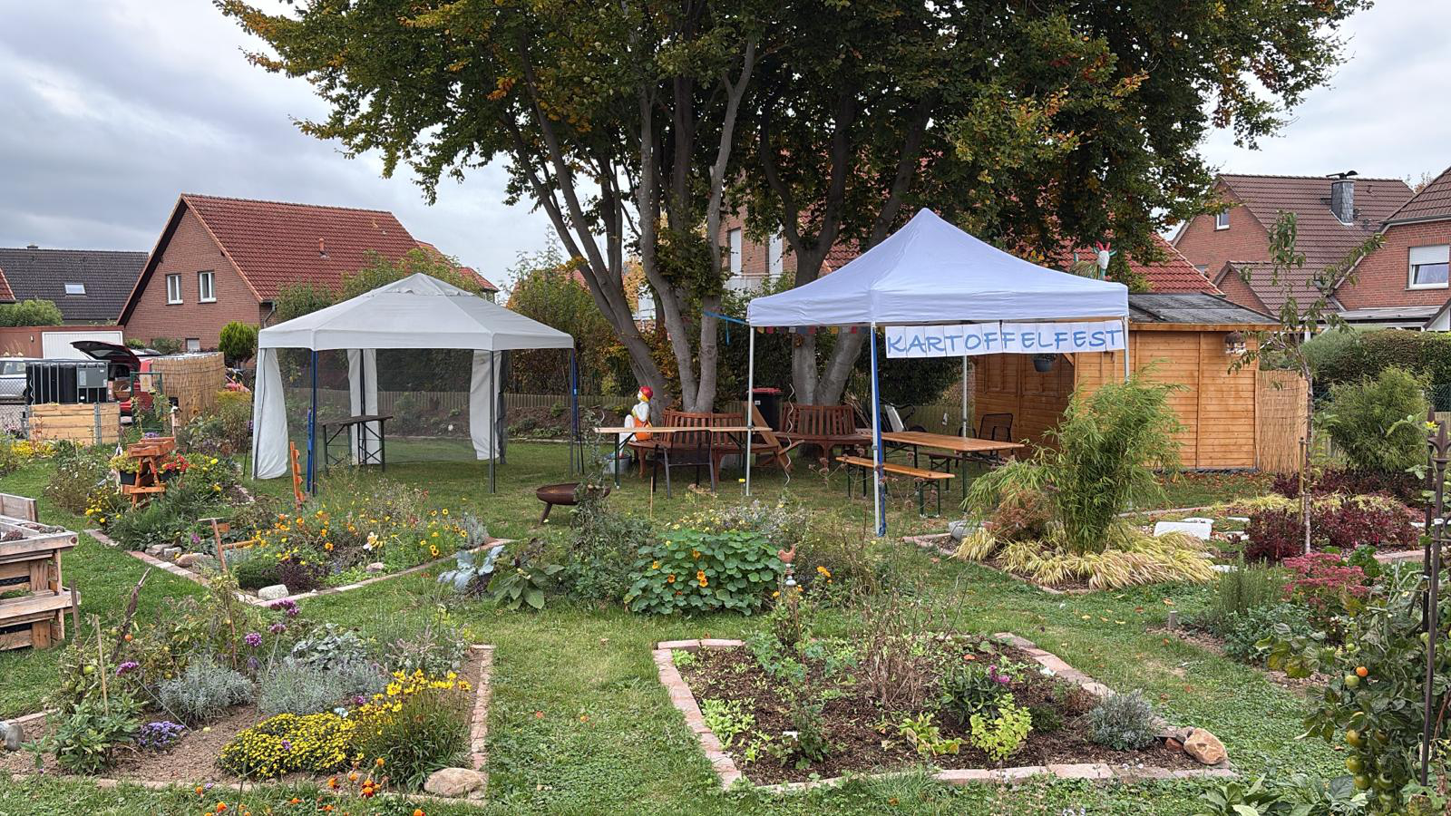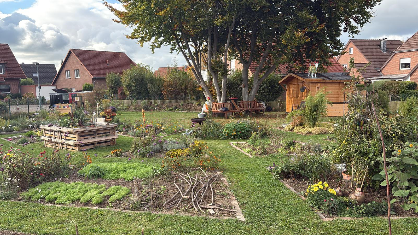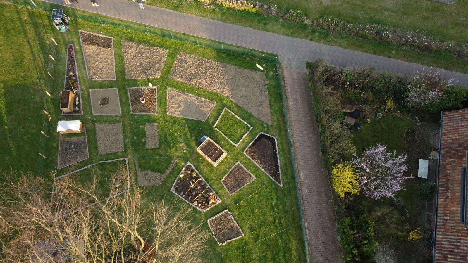 Bürgergarten, 24 Parzellen mit unterschiedlicher Bepflanzung. Kräuter, Gemüse und Blumen. Wir bemühen uns bienenfreundlich, umweltfreundlich und nachhaltig zu sein. Es wird auch Leinen angebaut.