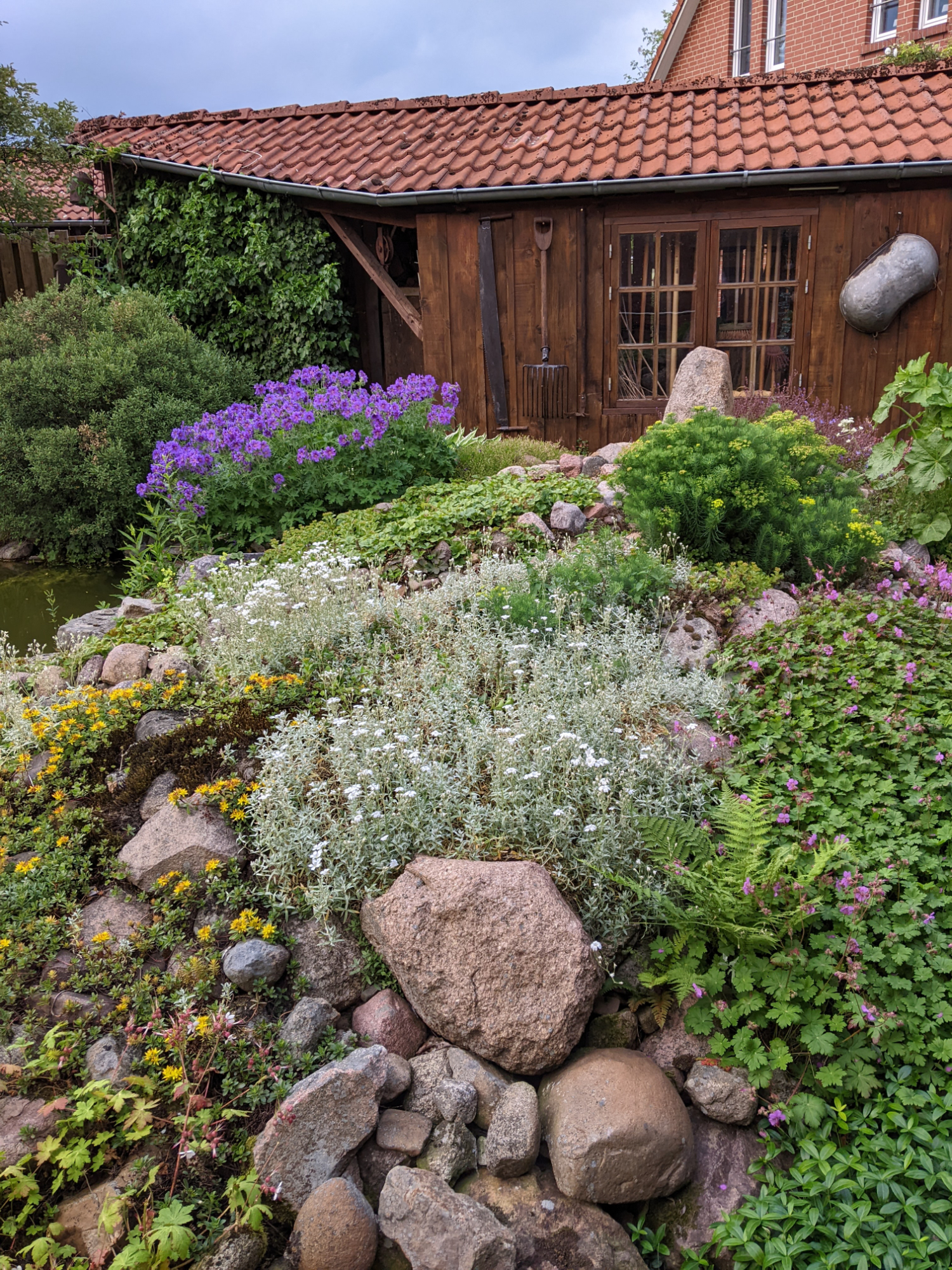 “Mein Garten und ich“ sind ein wenig älter geworden! 700 qm Gartenlandschaft mit vielen Stauden, Sträuchern, Bäumen und einem naturnahen Teich.
