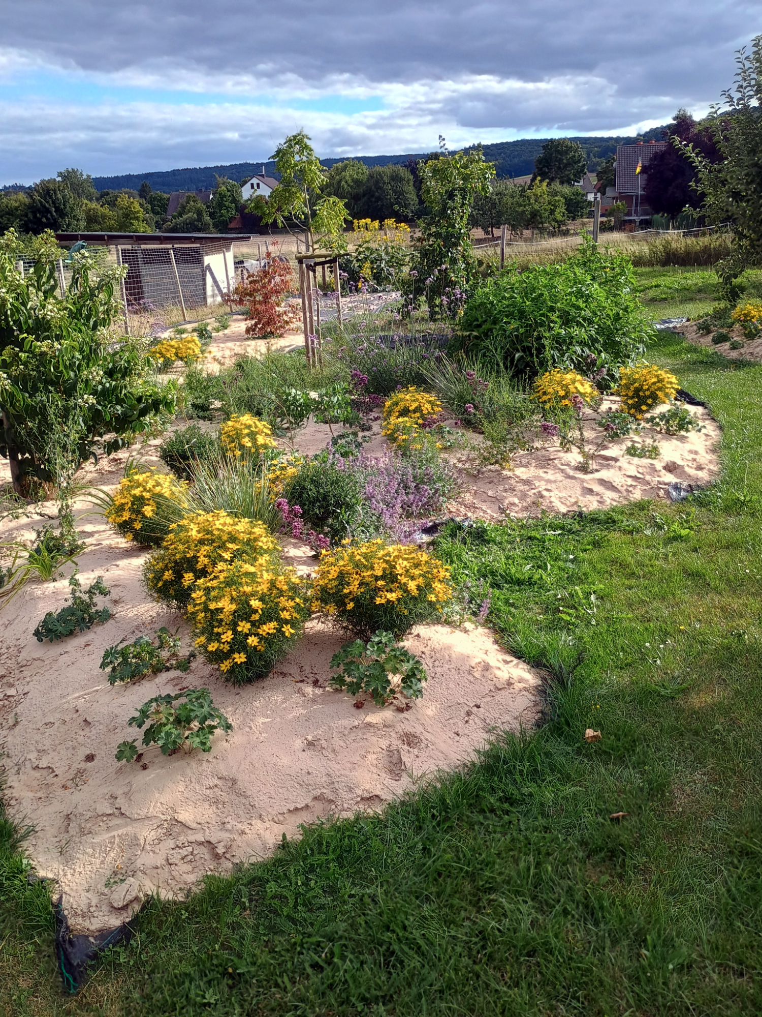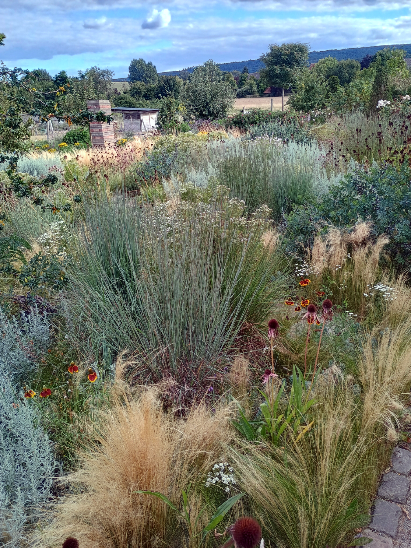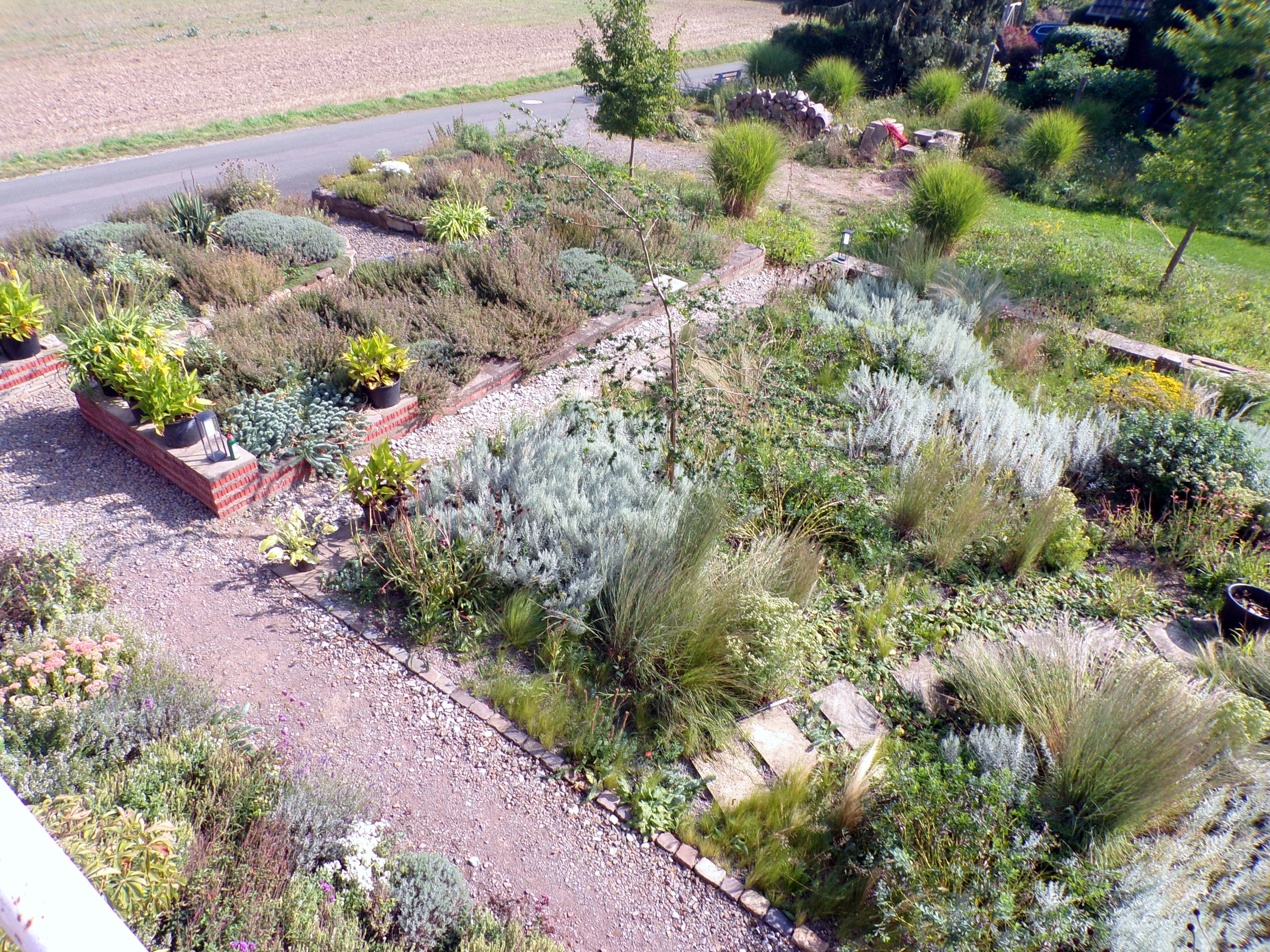 Staudenbeete, Präriegarten, mediterraner Garten, Hochbeete, Schattenbeet, Obstbäume, Klimabäume und Rosen.